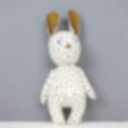 En bedårande liten blocktryckt kanin gjord för de minsta. Färgerna som används vid blocktryck och broderi är Azo-fria.