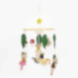 En underbar mobil för barnkammare, lekrum eller sovrum. Mobilen är tillverkad av 100% handfiltad ull och har figurer hängandes i en bamburing.