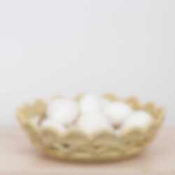 This is a nicely decorated bread basket and part of the series Palm, which are woven by hand by women in rural Bangladesh. Manufacturing creates important jobs in regions where handicrafts are the only source of income.