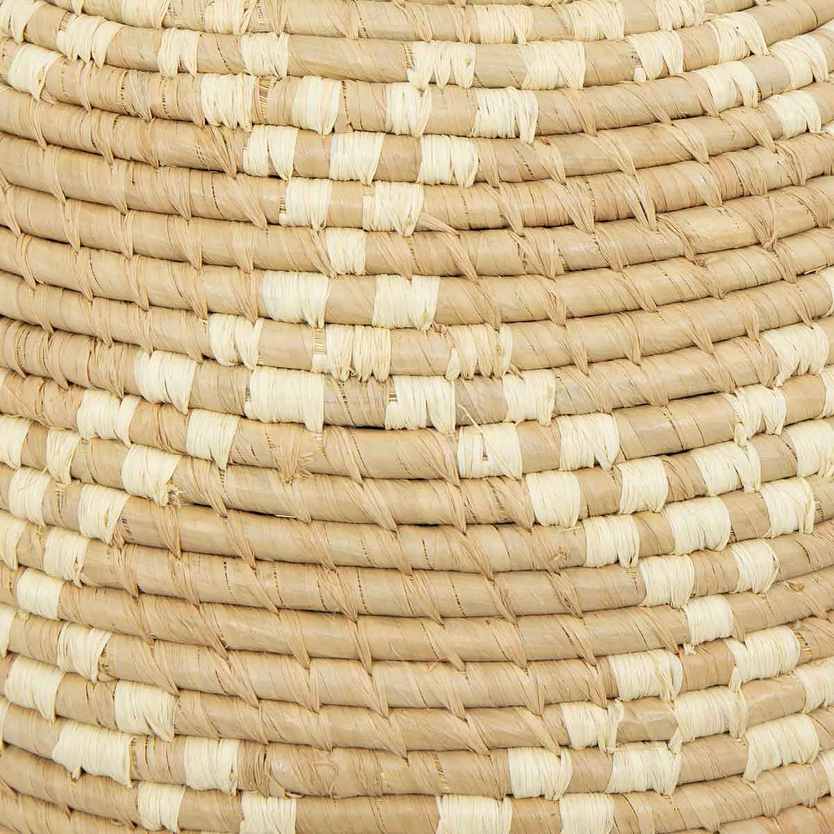 The basket is handwoven in Madagascar, where the material Raffia is also regularly harvested. Raffia is a very durable, light-colored fiber from the leaves of the raffia palm.