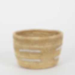 The tightly hand-woven palm leaf baskets are made by women from the nomadic Ngurunit people in Kenya. The baskets are characterized by the small, sparsely placed glass beads. Originally, these baskets were used for milking camels.