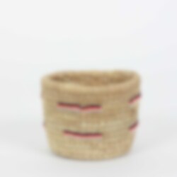 The tightly hand-woven palm leaf baskets are made by women from the nomadic Ngurunit people in Kenya. The baskets are characterized by the small, sparsely placed glass beads. Originally, these baskets were used for milking camels.