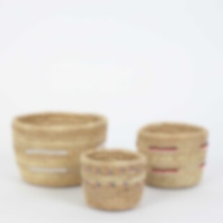 Tre små flätade korgar med färgglada glaspärlor - Fair Trade