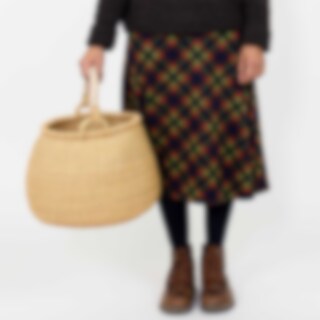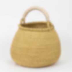 The baskets called "Bolga baskets" are made in the Bolgatanga area in northern Ghana. Most of the producers are women and the basket weaving helps to support them. The so called elephant grass that is used grows on the hillsides along the rivers.