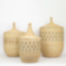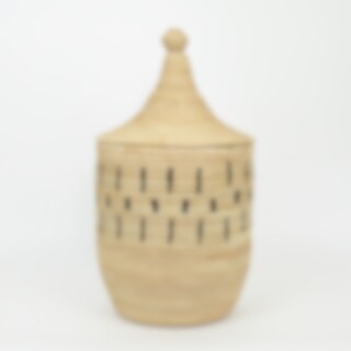 The well-made very sturdy basket, that works great as a laundry basket or storage basket is woven by hand using local growing palm leaves. Basket production is an important source of income for many artisans in the villages of Malawi.