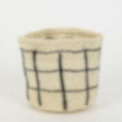 Making baskets is a very labor-intensive art. The artisans roll the yarn in their lap to create threads to braid with.