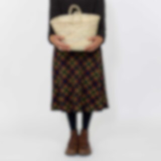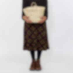A traditional storage basket with handles from Morocco, made from handwoven palm leaves. The dimensions may vary slightly from basket to basket.