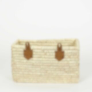 A decorative storage basket to hang on the wall. Beautiful as an office storage solution at home.