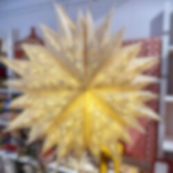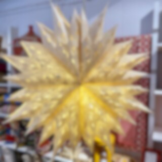 A traditional advent star made of hand-printed paper. The production is small-scale and entirely craft-based, which means that the paper is also handmade.