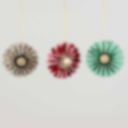 Ornaments made from handmade cotton paper. The papermaking process provides vital employment, especially for women in rural areas.