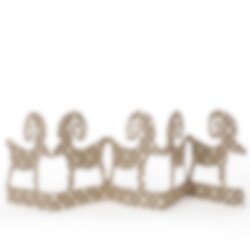 A beautiful Christmas decoration to display on the table or in the window. Unfold it like an accordion and it stands on its own. Made from handmade Lokta paper in white and brown. The foldable row of Christmas trees is easy to fold and reuse.