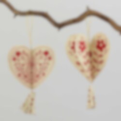 A small mobile with the Christmas heart in focus. Made from handmade lokta paper in Nepal.