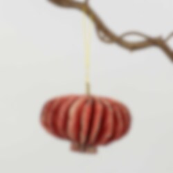 A slightly more luxurious Christmas tree ball in beautiful hand-marbled paper! Beautiful as a solitaire or with its red-pink colleague. Comes in a small patterned paper box.