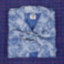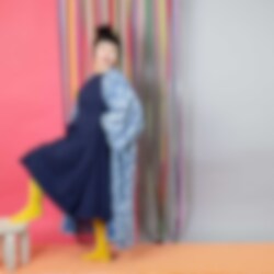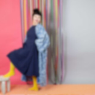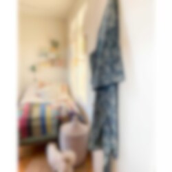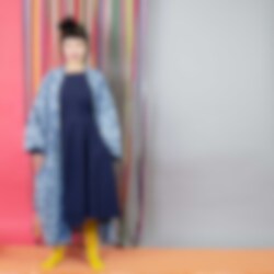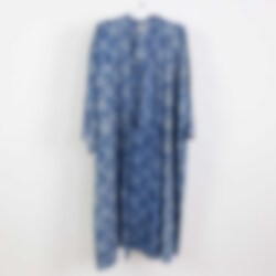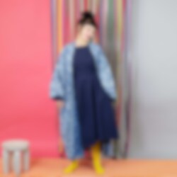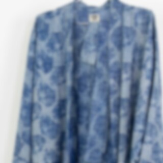 A full-length Japanese-inspired kimono. Made of a thin soft cotton quality. Natural is a series of natural dyed fabrics, which are manufactured using a method where the fabric is reserved with the help of sand during dyeing. The blue color is indigo, which can dry trap.
