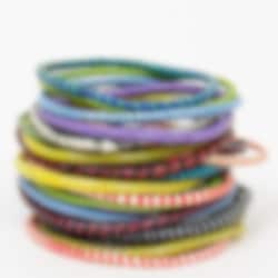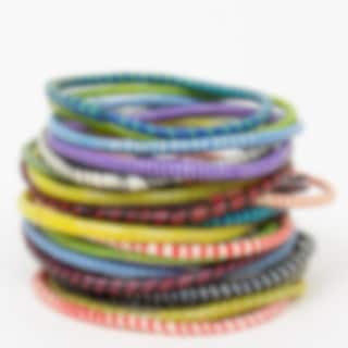The bracelets are made from recycled plastic by women who need to supplement the meager income from agriculture. The material used comes from recycled flip-flop shoes.