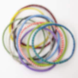 10 pcs of thin plastic bracelets in a mixed color combination.