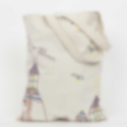 A bag in unbleached cotton with fine hand embroidery on the front. The hand-embroidered textiles are manufactured in the Khulna region of Bangladesh. The artisans is part of a Fair Trade organization, which creates important jobs in the countryside.