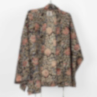 The cotton fabric is a thin, slightly dry quality. The kimono is generous in size.