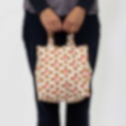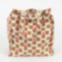 This small bag is perfect to carry your lunch in. Of course, it works for other things, such as storage in the bathroom or as a shoe bag etc. The bag is lined with white cotton fabric. The patterns are printed with hand-carved wooden blocks.