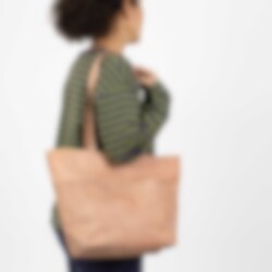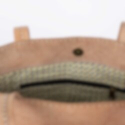 A beautifully hand-stitched leather shoulder bag. The leather bag is lined with cotton fabric and features a zippered pocket.