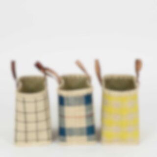 This Raffia shopper bag is the perfect accessory for the beach, the picnic or simply for shopping. Raffia palms grow in tropical regions in Africa. The fibre is produced from the leafs and can be dyed and woven as a texile.