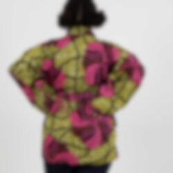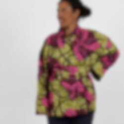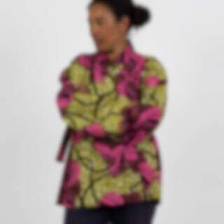 Denna kimonoinspirerade jacka/blus är en öppen modell med ett tillhörande knytband.
