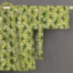 This kimono-inspired jacket/blouse is an open model with a tie.