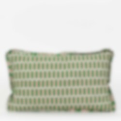 The Tivoli cushion cover has the same fine hand-printed pattern on both sides. The pattern is printed with a hand-carved wooden block on off-white cotton. Please notice the little nice pleated edge!