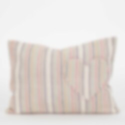 A small pillow with an appliqué detail. The striped fabric appears on both the front and back.