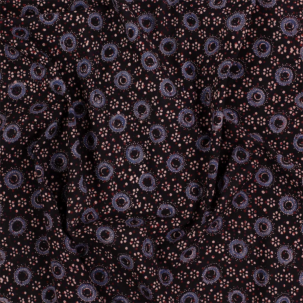 Ajrakh is a unique form of block printing that is mostly found in Ajrakhpur, Kutch district of India and Sindh in Pakistan. Ajrakh patterns are often small-patterned with geometric shapes. Natural dyes are used, such as indigo.