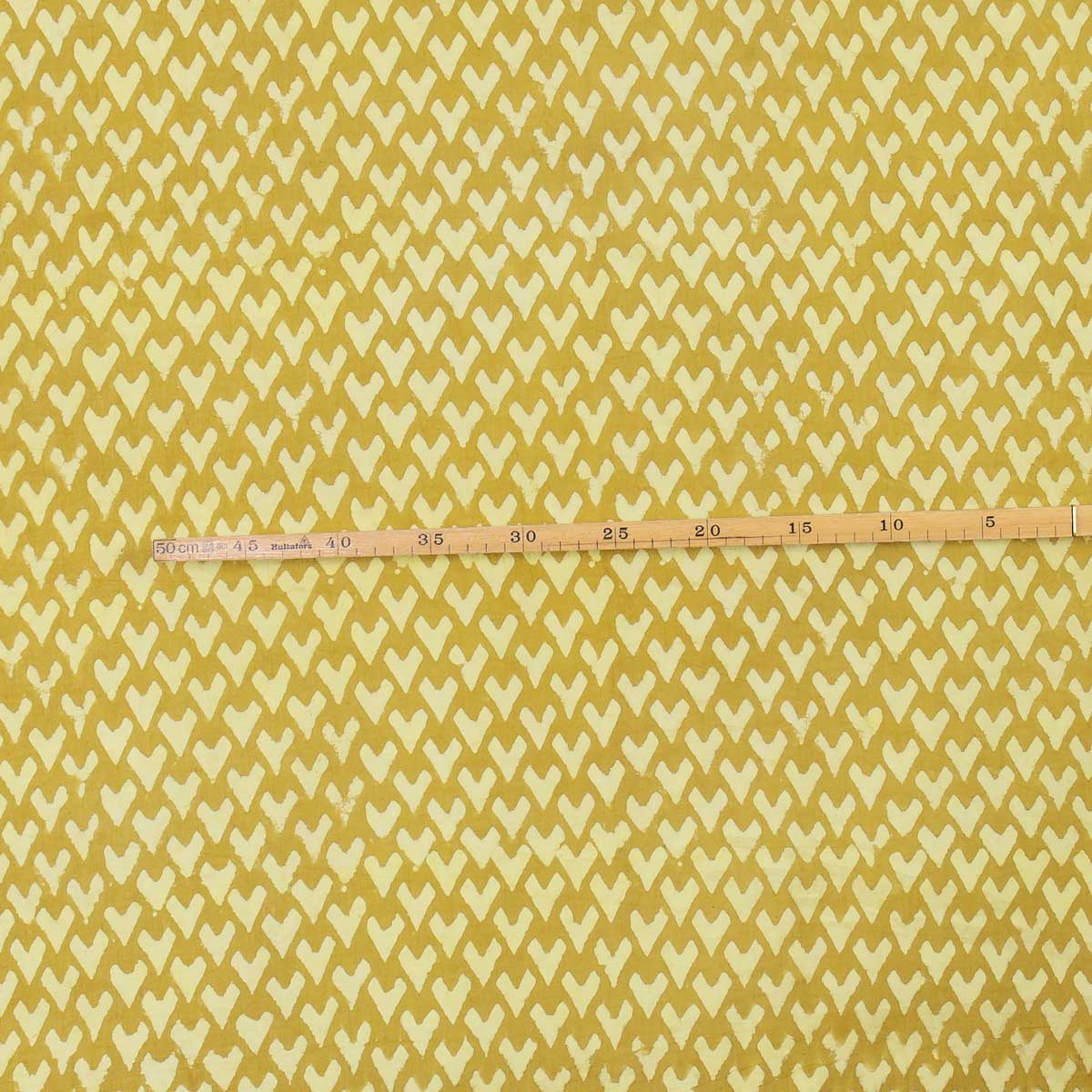 The fabric is hand-printed using a technique known as block printing. In block printing, the pattern is carved into a small wooden block, which is then used as a stamp. For multicolored designs, different blocks are used for each colour.