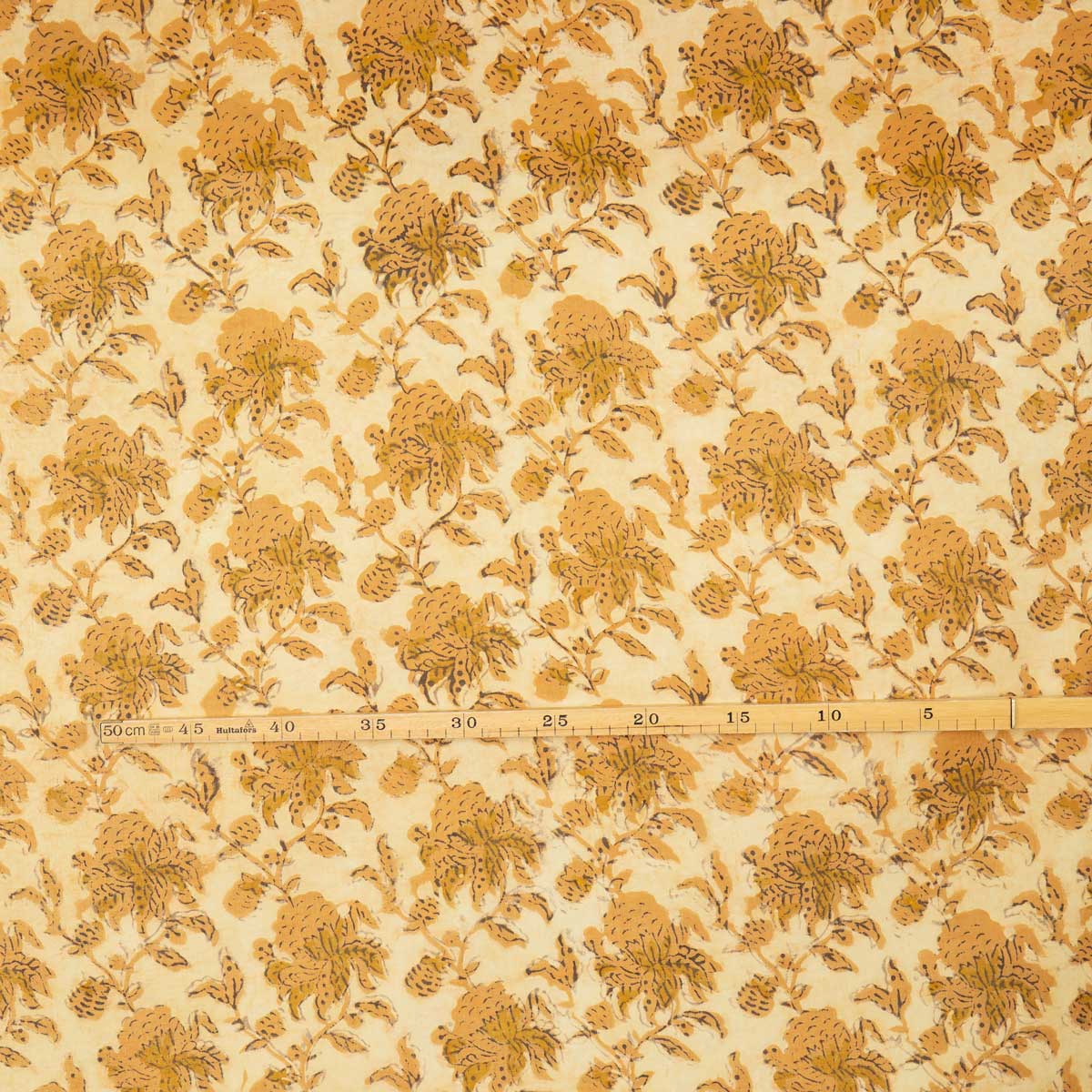 The fabric is hand-printed using a technique known as block printing. In block printing, the pattern is carved into a small wooden block, which is then used as a stamp. For multicolored designs, different blocks are used for each colour.