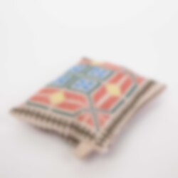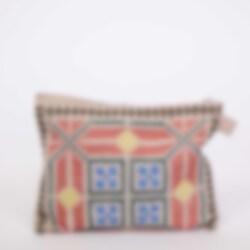 A modern cross-stitch embroidery adorns this purse, which is made in an organization in the northern part of Bangladesh, whose main goal is to create jobs for the local population.