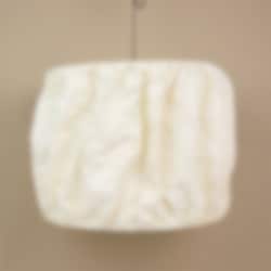 The wrinkled lampshade is made from a handmade Lokta paper. The paper is of high quality and can withstand being wrinkled over and over again. The lampshade creates a warm nice light. The lampshade hangs directly in the cord. Preferably use LED light.