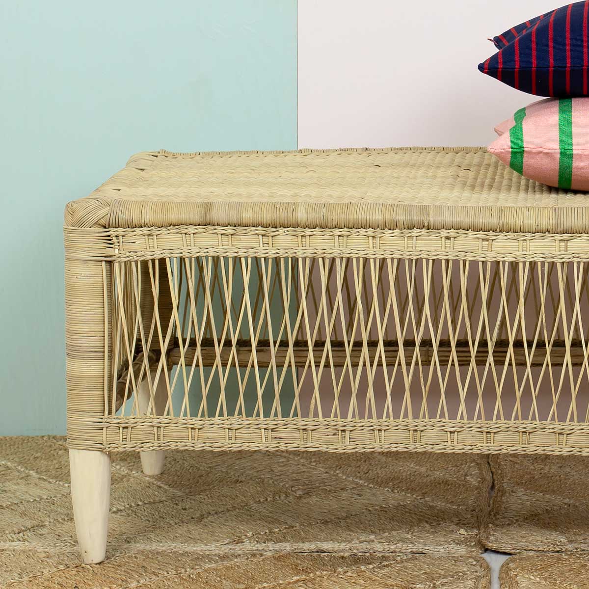 The airy rattan bench with its beautiful details is an exquisite craft. Only materials such as rattan, bamboo and water is used in this completely artisanal, ecological and small-scale manufacturing. The bensch is for indoor use.