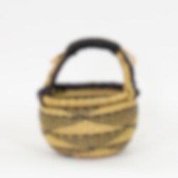 This tiny "Bolga basket" is the baby variant of the traditional shopping basket. This one too has a leather handle.