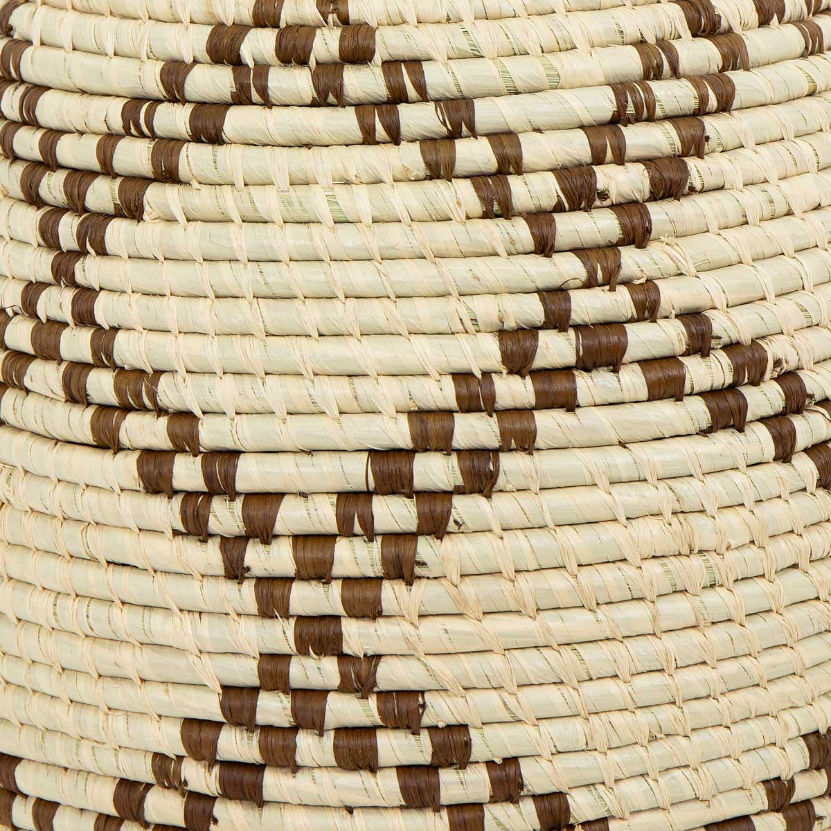 The basket is handwoven in Madagascar, where raffia is regularly harvested. Raffia is a highly durable, light-colored fiber made from the leaves of the raffia palm.