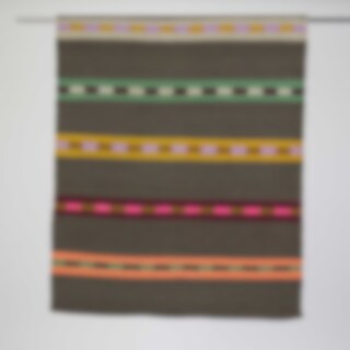 The "Dhurrie" rug is handwoven by skilled artisans on a vertical loom.