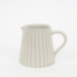 This jug, suitable for milk, sauce etc, is made in a pottery workshop outside Kathmandu in Nepal. The workshop is run by three brothers, all of whom have been trained by their father. They mostly work with stoneware clay and throw all objects by hand.