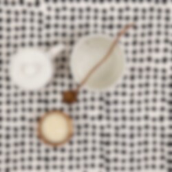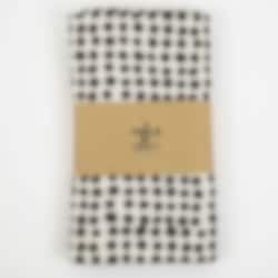 En handtryckt duk i en stadig bomullskvalitet. Mönstret är blocktryckt, vilket betyder att tyget trycks med en stor trästämpel, ett ca 15x20 cm stort handsnidat träblock.