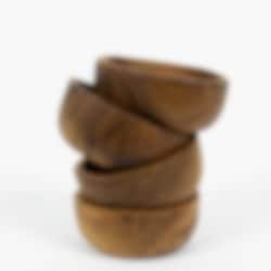 The bowl is made from leftover material from teak production. Here, roots and otherwise unusable material have been used to make it possible to grow teak again.