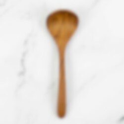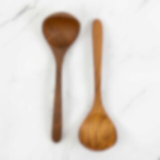 The spoon is made from leftover materials from teak production. Roots and otherwise unusable wood have been repurposed to make it possible to cultivate teak again.