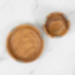 A small handcrafted wooden dish with subtle checkered details. Perfect as a decorative, unique dish for a set table.