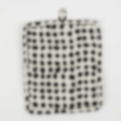 A potholder with a practical rectangular shape. It is made of hand-printed cotton and an insulating polyester filling, which protects the hands when cooking.