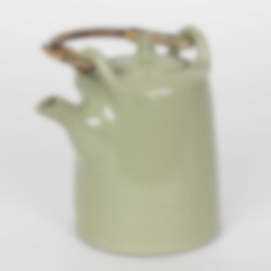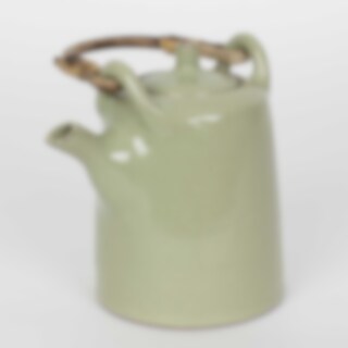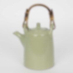 A small handmade teapot in durable stoneware with a bamboo handle. The hand-thrown ceramics are made in a small pottery on the outskirts of Kathmandu.