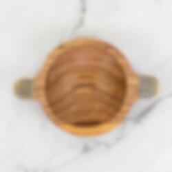 A small bowl with bone-covered handles. Just like our wooden utensils, this wooden bowl should be hand-washed. Feel free to oil it with olive oil.