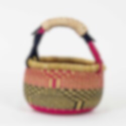 This tiny "Bolga basket" is the baby variant of the traditional shopping basket. This one too has a leather handle.