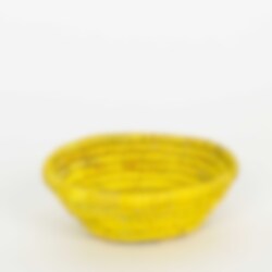 A small bread basket in miniature format, or a storage basket for keys, jewellery, or loose change. Handwoven from dyed palm leaves.