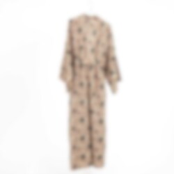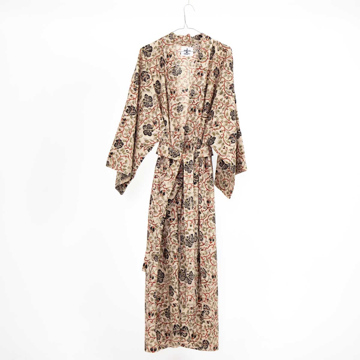 The cotton fabric is a thin, slightly dry quality. The kimono is generous in size.