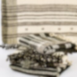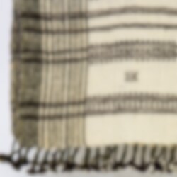 The dry wool is hand-spun and woven on pit looms. The motifs are traditional and very characteristic. The two colors used in this particular blanket are undyed, which means that the natural white and the natural brown are the colors from the sheep.